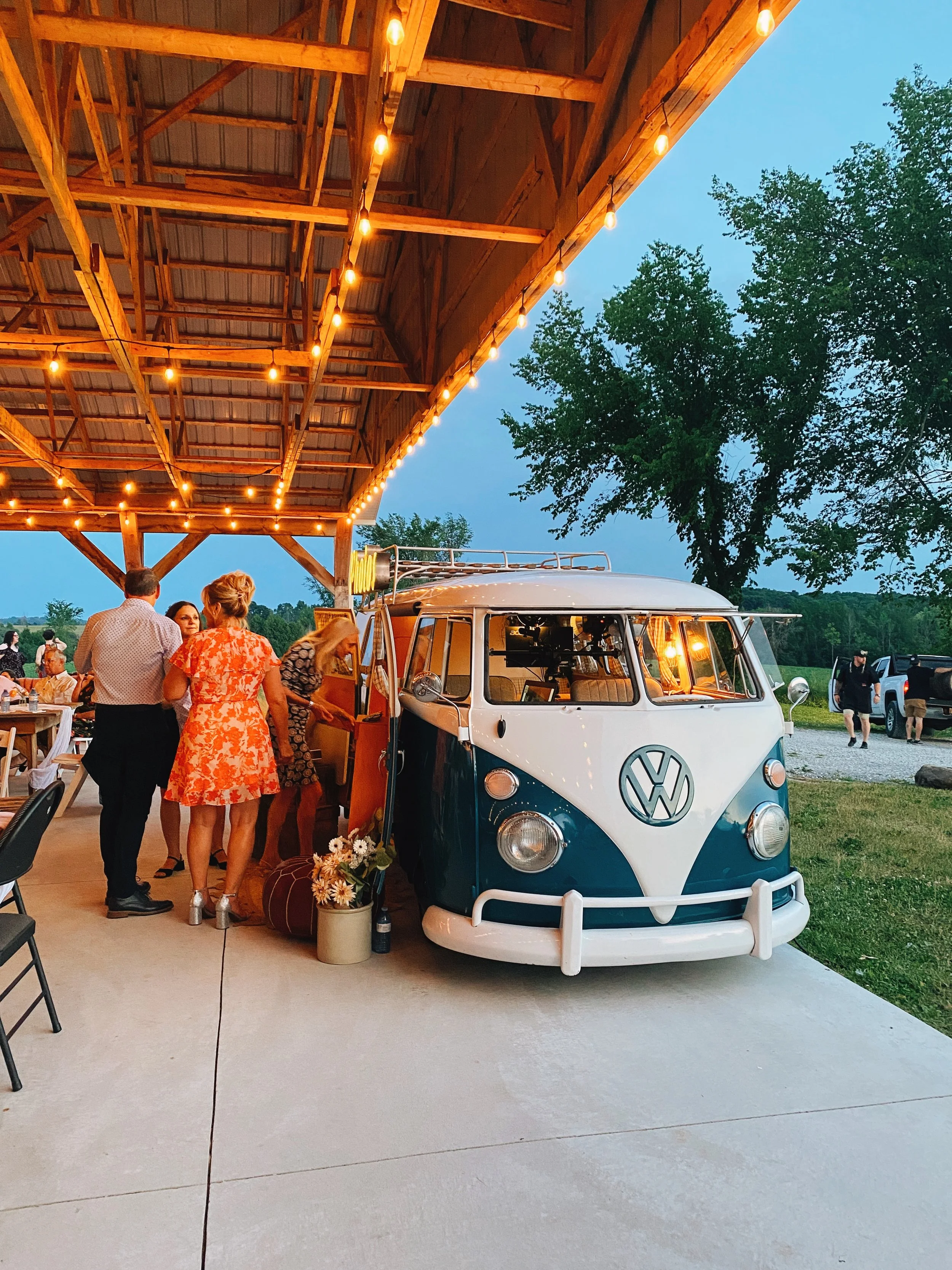 Choose from our iconic white or retro blue Volkswagen buses—each thoughtfully restored and designed for modern celebrations. With on-site printing, personalized photo strips, and beautifully styled interiors, every detail is considered.